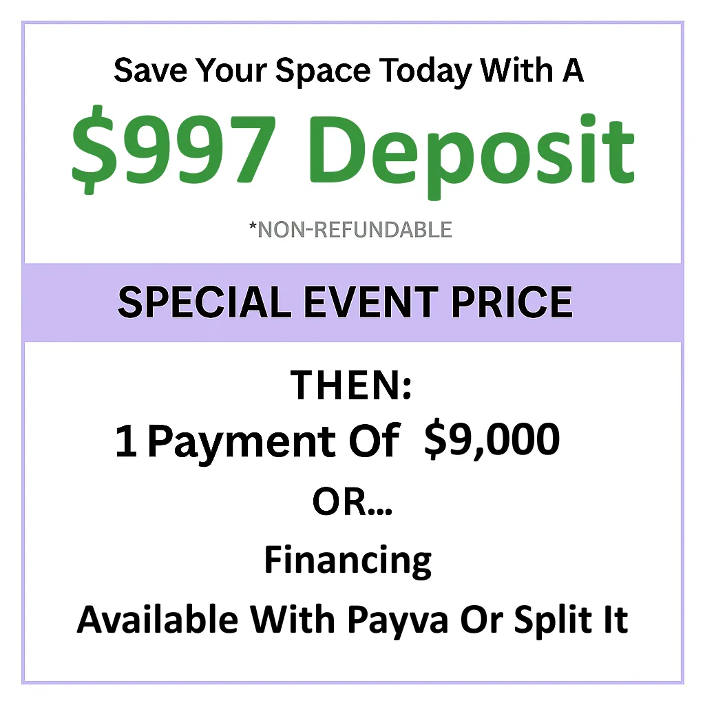 All payments are completely non-refundable including the $997 deposit if you are unable to complete the payment plan before Sunday November 23rd 11:59 CST.